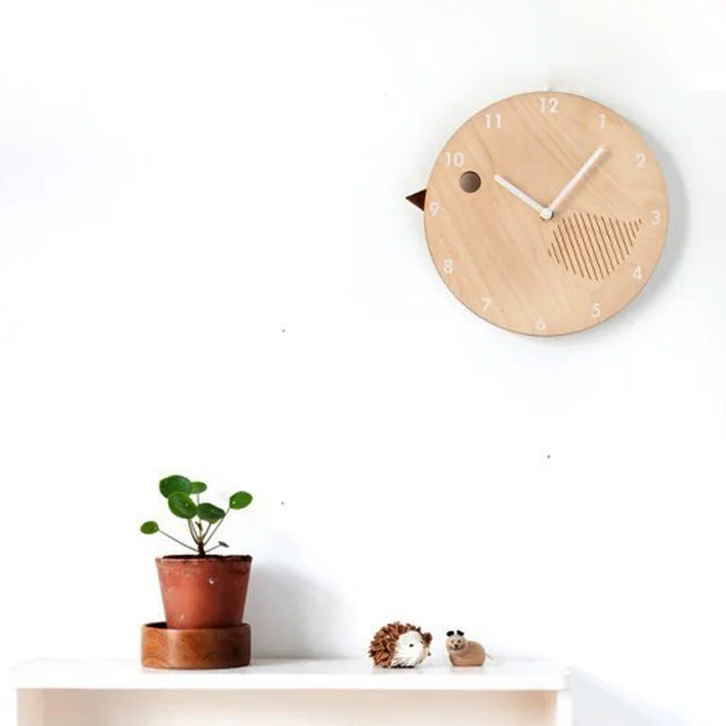 1pc Cartoon Bear Bird Kids Room Wood Wall Clock Nordic